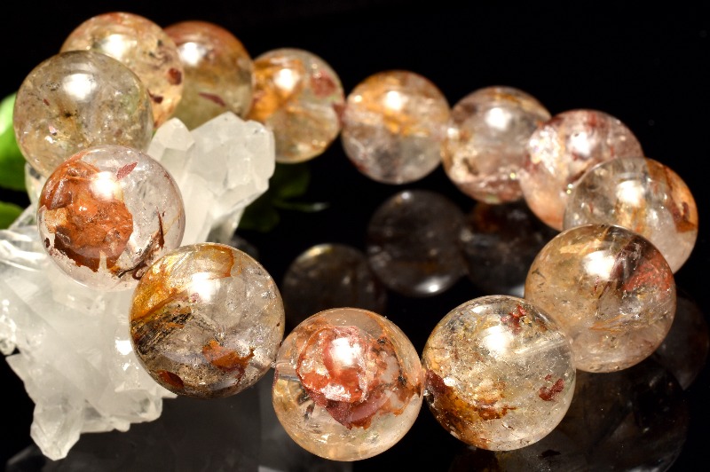 【1点物】ヒマラヤ産◇ライモナイト入り エレスチャルクォーツ 17mm ブレスレット _MC6