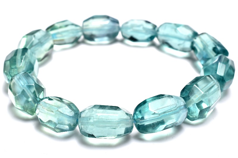 【1点物】キラキラ◇グリーンブルー フローライト 14-16x10-11mm 原石ラフカット ブレスレット _MC16