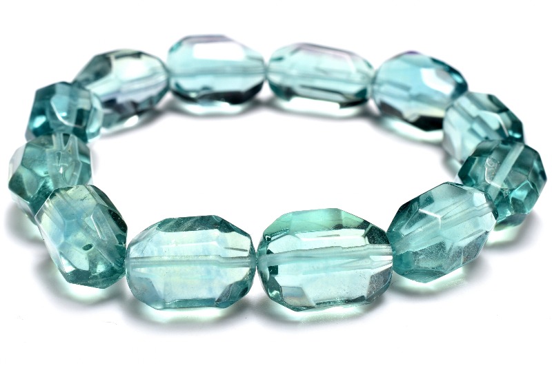【1点物】キラキラ◇グリーンブルー フローライト 17-19x11-12mm 原石ラフカット ブレスレット _MC17