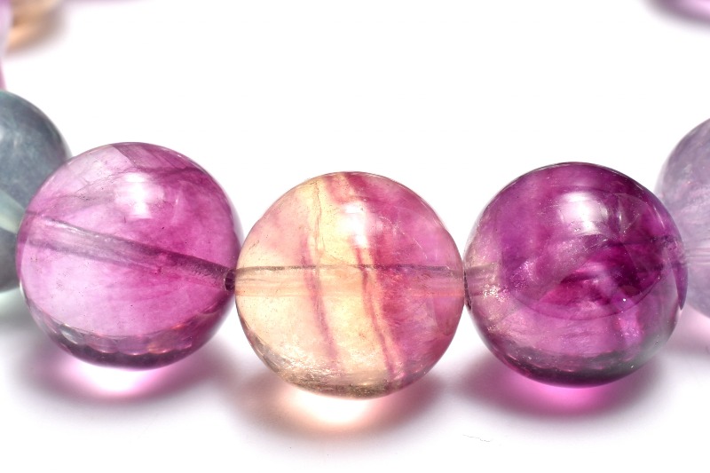 1つの石が複数の色を持つバイカラーのものもあり、「レインボーフローライト」と呼ばれます。