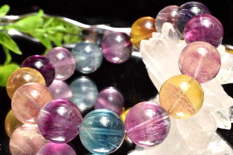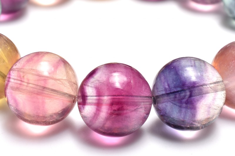 1つの石が複数の色を持つバイカラーのものもあり、「レインボーフローライト」と呼ばれます。