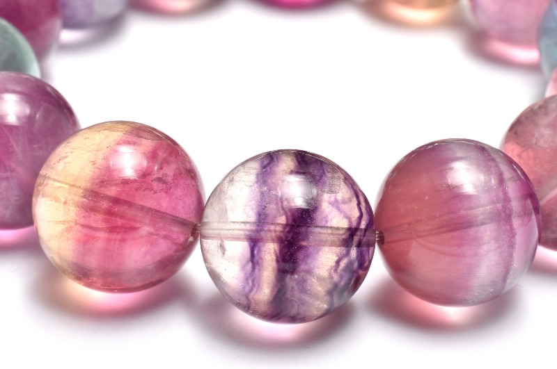 1つの石が複数の色を持つバイカラーのものもあり、「レインボーフローライト」と呼ばれます。