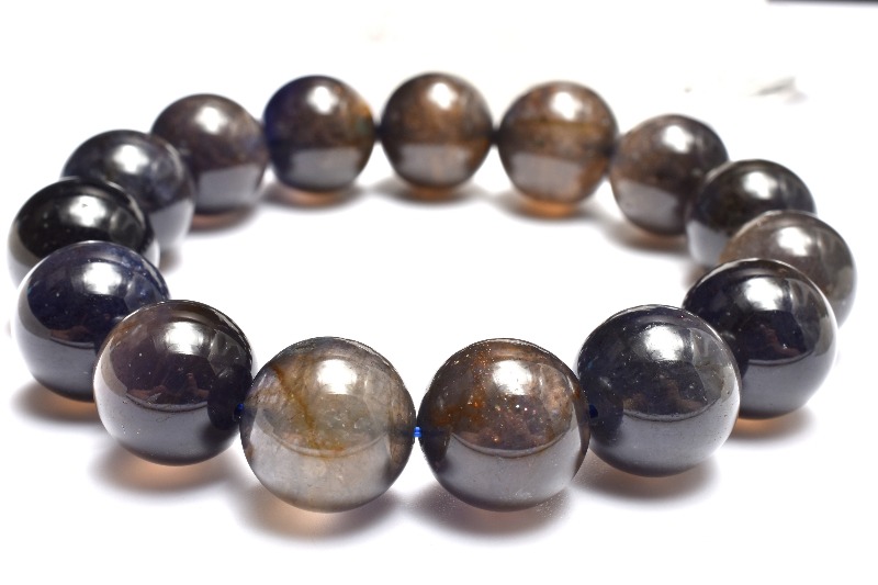 【1点物】多色性抜群! アイオライトサンストーン 14-14.5mm ブレスレット _MC41