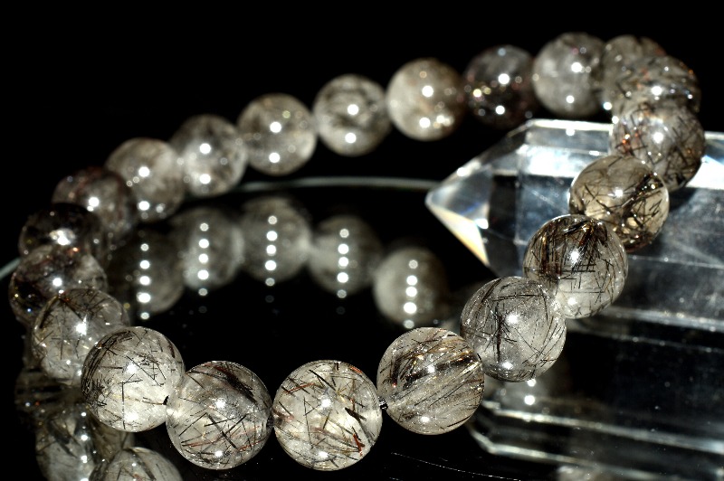 【1点物】希少カラー ブラックブロンズルチルクォーツ 9mm ブレスレット _MC60