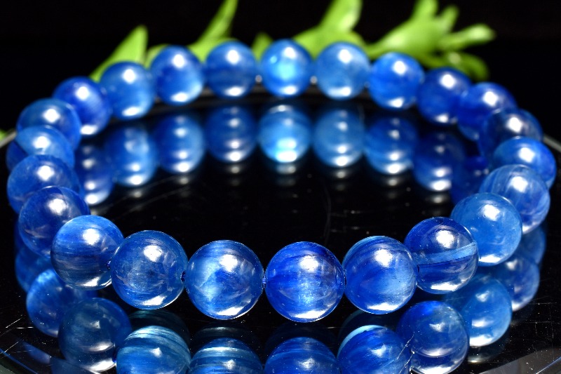 【1点物】AA☆着色ありキャッツアイ効果 カイヤナイト 8.5mm ブレスレット _MC80