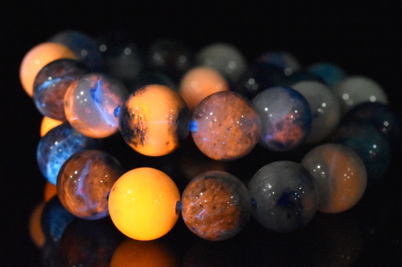 【1点物】希少◇発光鉱物 ブルーハックマナイトシリカ 6.5mm ブレスレット _MC150