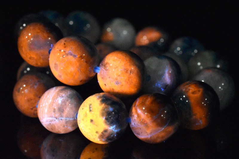 UVライトを当てると淡いオレンジ色に発光します。(使用しているライトによって見え方に差がございます)