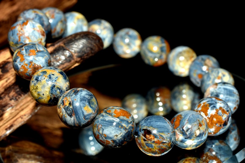 一般的にはタイガーアイ系の茶褐色が多いですが、ブルータイガーの青系もあり、茶と青の混じったものもあります。