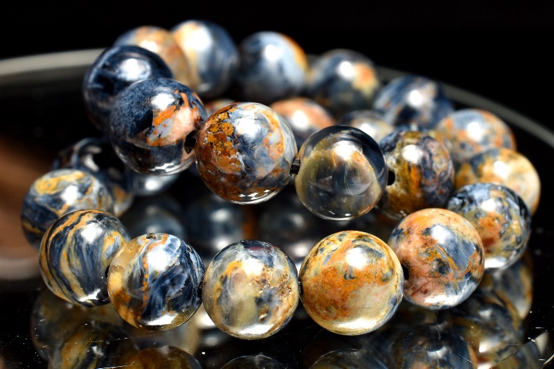 一般的にはタイガーアイ系の茶褐色が多いですが、ブルータイガーの青系もあり、茶と青の混じったものもあります。
