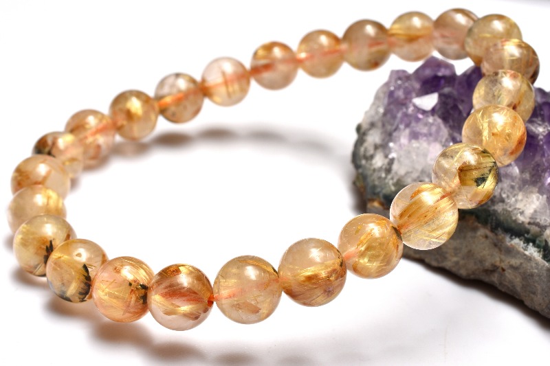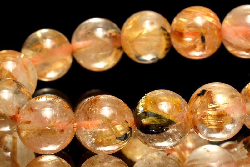 材質ヘマタイトインタイチンルチルクォーツ 7.5mm 産地:ブラジル