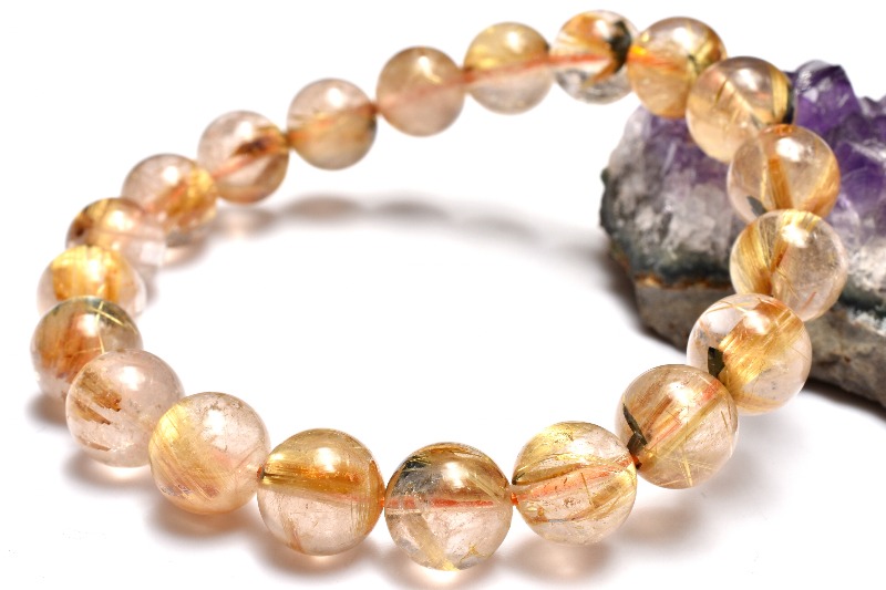 材質ヘマタイトインタイチンルチルクォーツ 9.5mm 産地:ブラジル