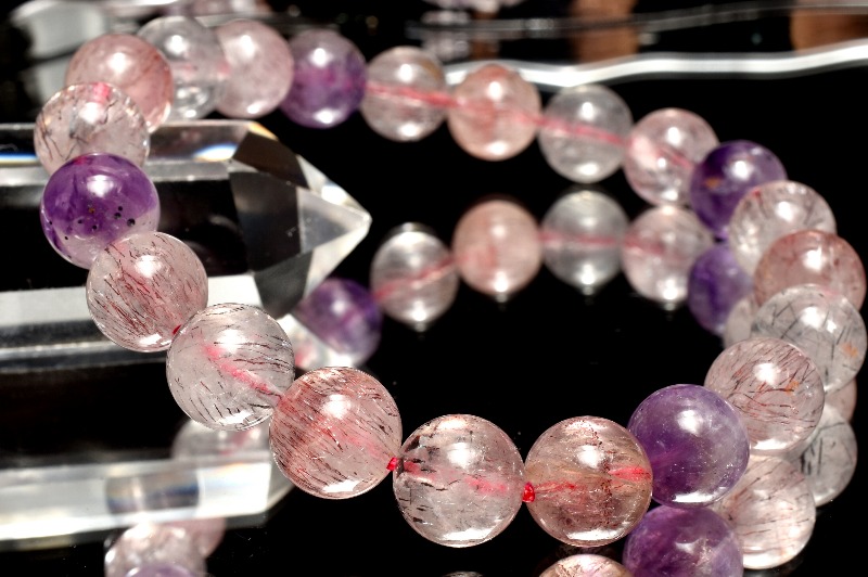 一般的に流通しているスーパーセブンは、上記の7つの鉱物を全て含んでいるものは非常に希少で、多くは原石の段階で7つの鉱物を全て含有しているものをカットや加工した石をスーパーセブンと呼んでいます。