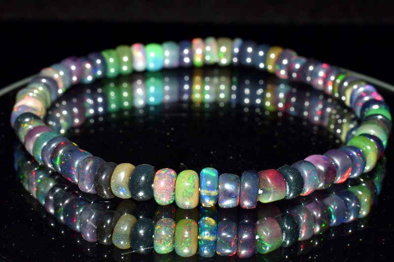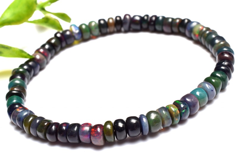 【1点物】AA☆エチオピア産 ブラックプレシャスオパール 2-3x5mm ボタン ブレスレット _MC356