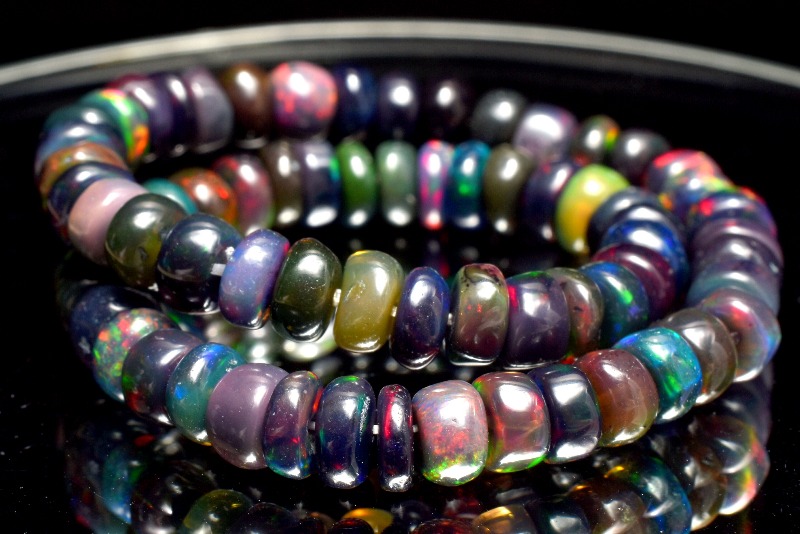 【1点物】AA☆エチオピア産 ブラックプレシャスオパール 2-3x5mm ボタン ブレスレット _MC361