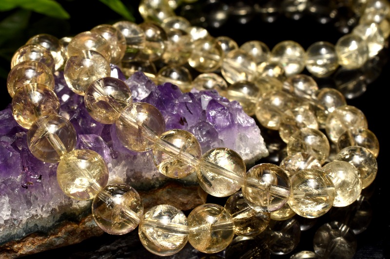 シトリンのゴールドの輝きと、スモーキークォーツの美しいブラウンカラーが見事に溶け合い、不思議な陰影を見せてくれます。天然での非加熱の物は特にグラデーションになっていたり、粒玉の中自体で二層になっていたりと、とても特徴的な見た目をしています。