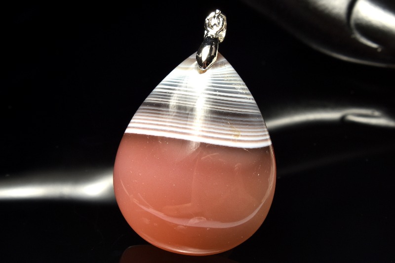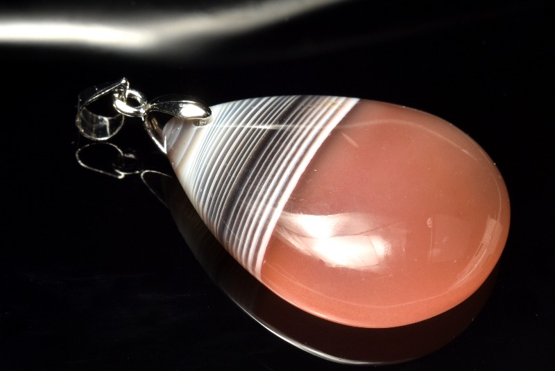 【1点物】美しいストライプ◇天然縞瑪瑙 ボツワナアゲート 31x24mm ドロップ ペンダントトップ _PC6620
