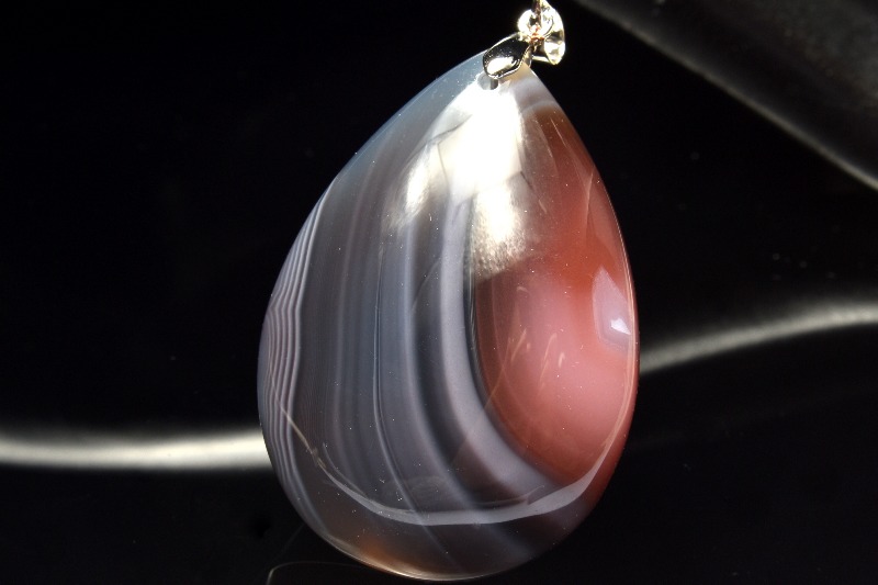 ほんのりとした透明感のある地石に美しい縞模様(しまもよう)が見られるのが、ボツワナアゲートの特徴です。同じ縞瑪瑙の仲間には、ブルーレースアゲート、サードオニキス、天眼石などがあります。