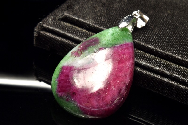 緑色の部分をゾイサイト、赤〜桃色の部分がルビーでそれらが混ざりあった天然石です。