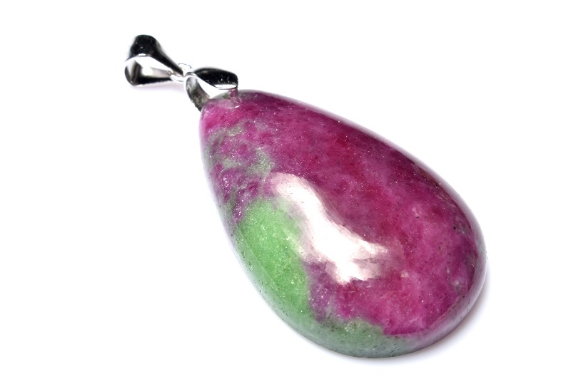 緑色の部分をゾイサイト、赤〜桃色の部分がルビーでそれらが混ざりあった天然石です。