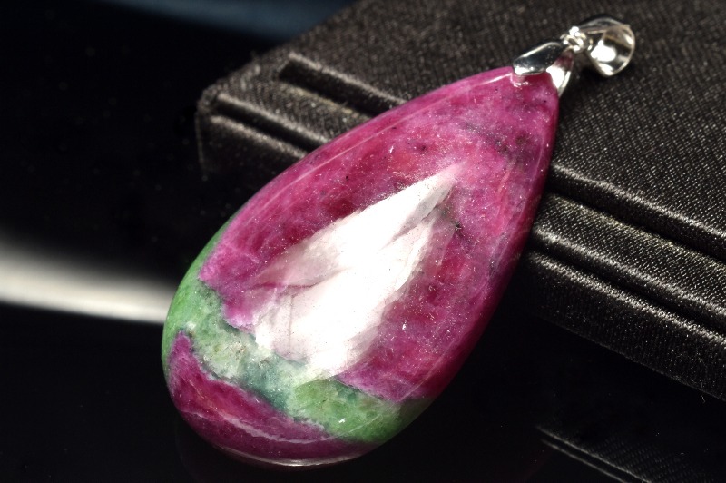 緑色の部分をゾイサイト、赤〜桃色の部分がルビーでそれらが混ざりあった天然石です。