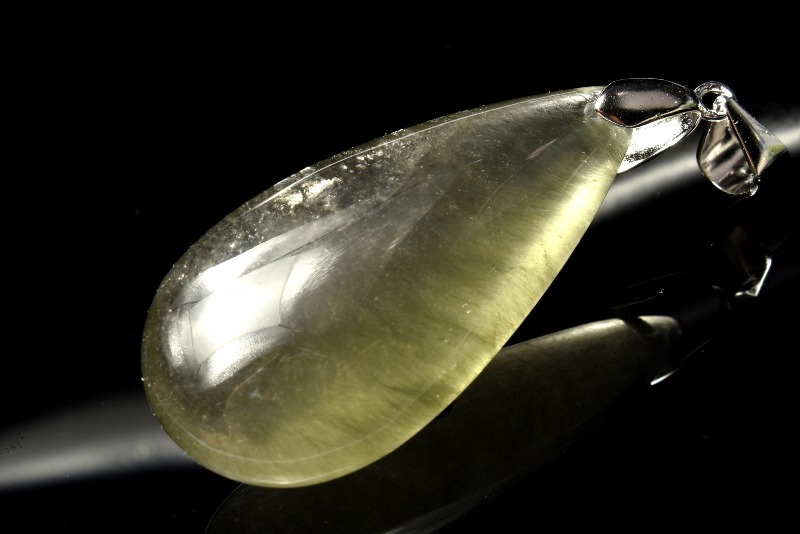 【1点物】Silver925◇ アクチノライトインクォーツ 33x16mm ドロップ ペンダントトップ _PC6664