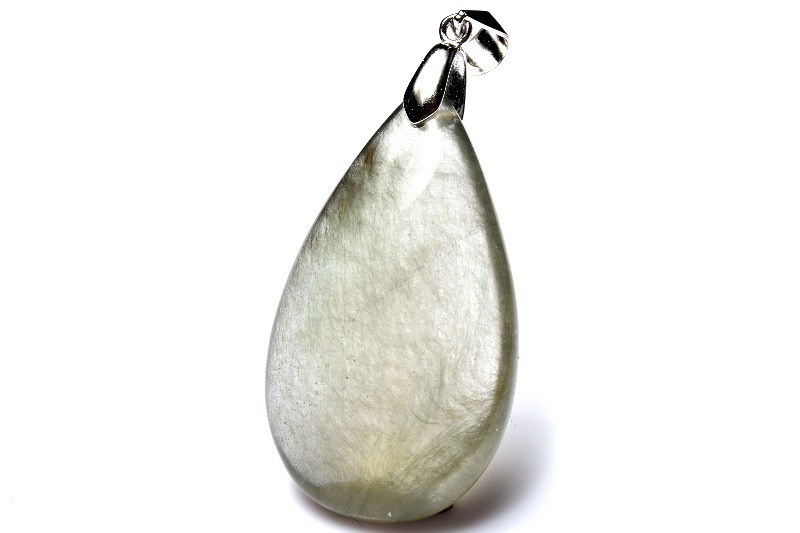 【1点物】Silver925◇ アクチノライトインクォーツ 33x19mm ドロップ ペンダントトップ _PC6666