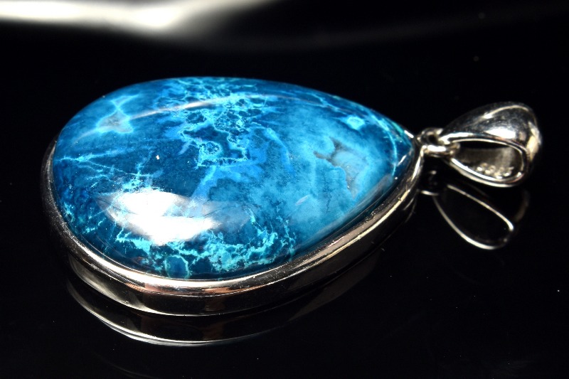 【1点物】Silver925◇高発色 クリソコラ 30x23mm ドロップ ペンダントトップ _PC6716