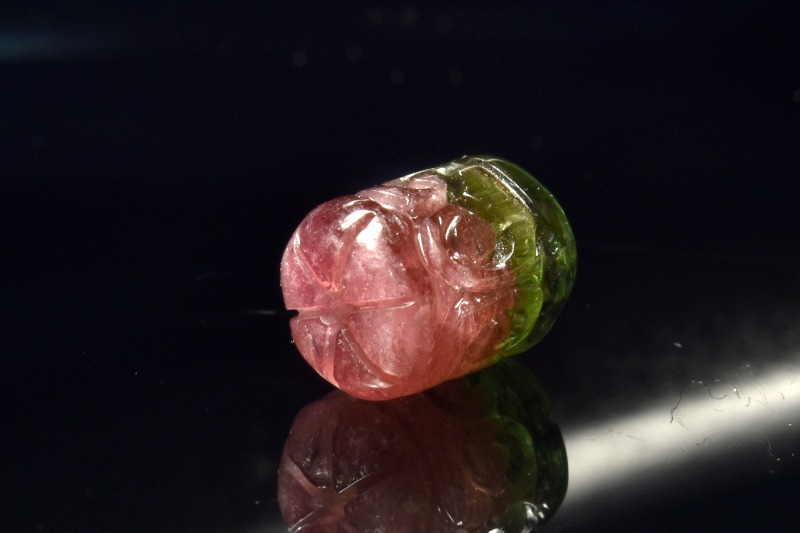 この他にも色々とありますが、グリーンとピンク2色に、はっきりと分かれているトルマリンがあります。何色かに分かれている物をパーティーカラーと呼びますが、このトルマリンの場合“ウォーターメロン(スイカ)”と呼んでいます。