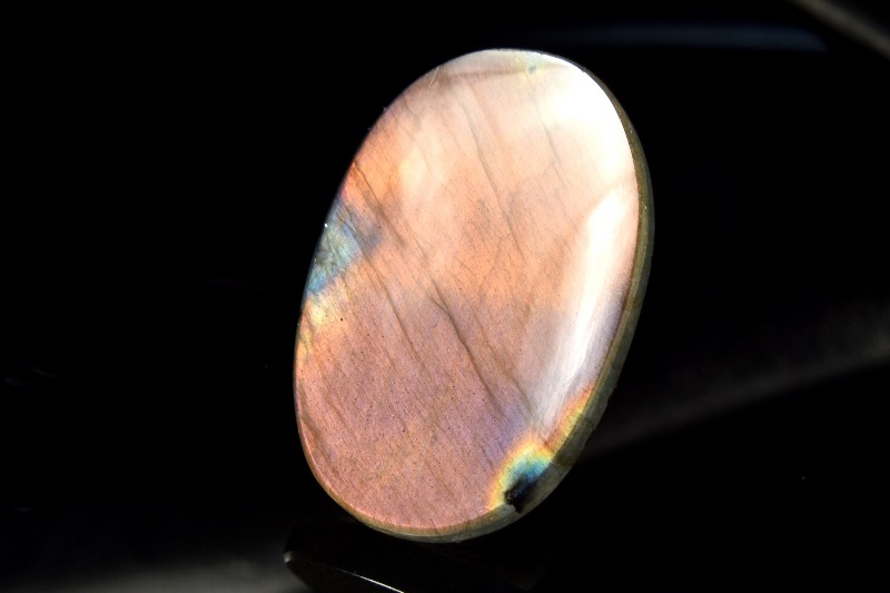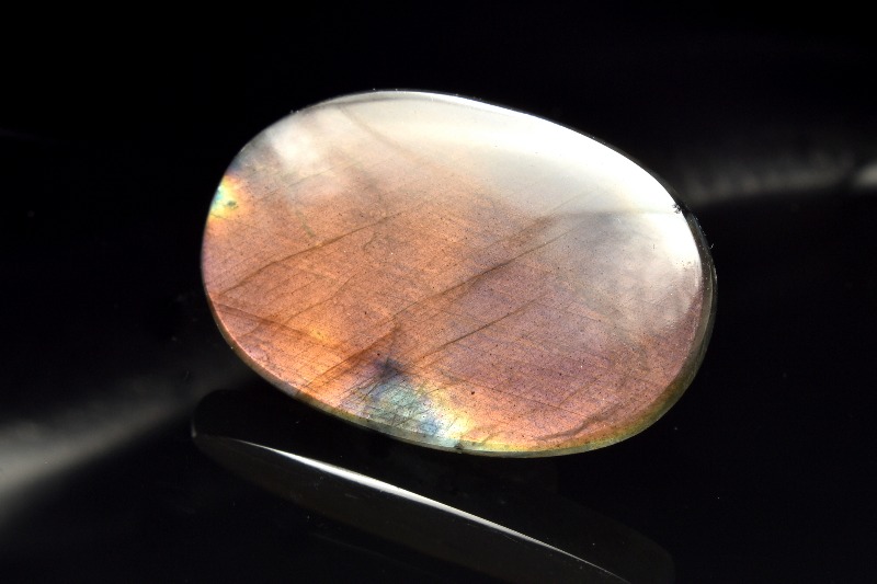 ラブラドライトの特色は、なんと言ってもその美しい閃光です。冷たそうでいて、非常に深みのある光は「ラブラドレッセンス(ラブラド光線)」と呼ばれます。