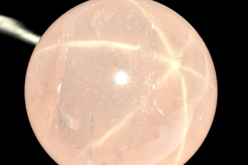 スターローズクォーツにあらわれるスター効果、またの名をアステリズムといいますが、このアステリズムにはエピアステリズムとダイアステリズムという2つの種類があります。これは反射光線によってスター効果がでるものがエピアステリズム、逆に透過光線によってスター効果がでるものがダイアステリズムとなります。簡単に言うと、前から照らしてスターがでるか、背面から光が入らないとスターがでないかということになります。スター効果を持つ代表的な石・ルビーやサファイアはエピアステリズムで、ローズクォーツの場合はダイアステリズムになります。エピアステリズムが表面に光が浮かぶように見えるのに対して、ダイアステリズムは石の中にスターが浮かんでいるように見えるため、神秘的です。普通に照明があたってもスターはでませんので、普通のローズクォーツと勘違いしてしまうこともあります.