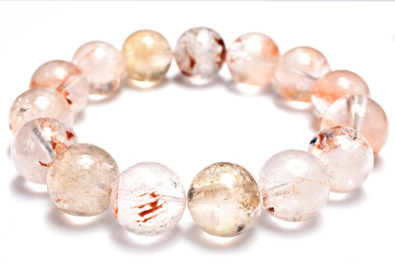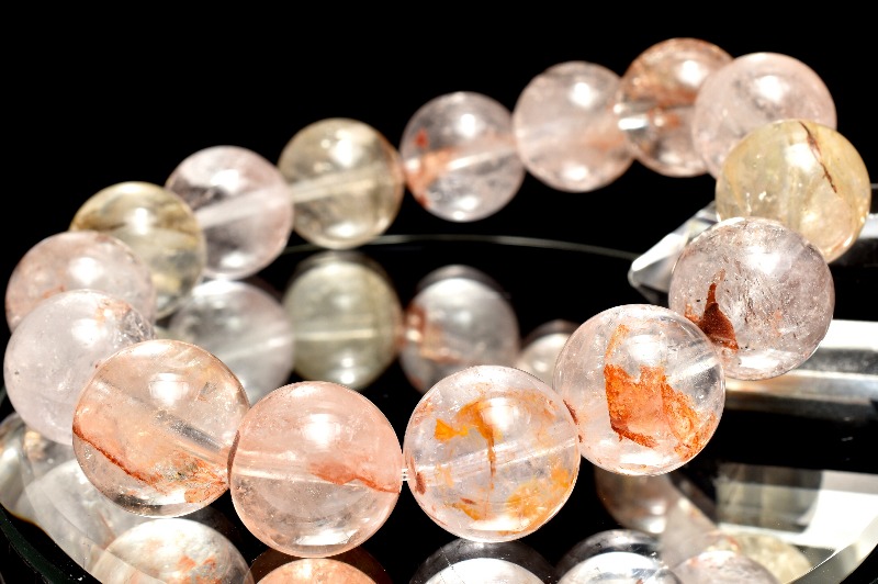 【1点物】希少◇ライモナイト入り オイルインクォーツ(石油入り水晶) 14mm ブレスレット _MC461