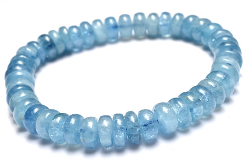 【1点物】海色ブルー アクアマリン 4x8mm ボタン ブレスレット _MC469