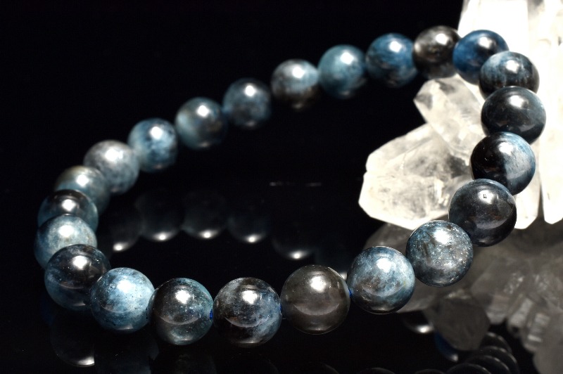 【1点物】南アフリカ産◇金属シラー ブラックアクアマリン 8mm ブレスレット _MC515