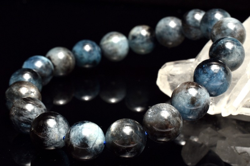 【1点物】南アフリカ産◇金属シラー ブラックアクアマリン 10mm ブレスレット _MC523