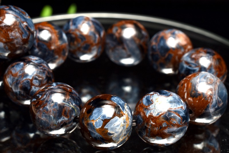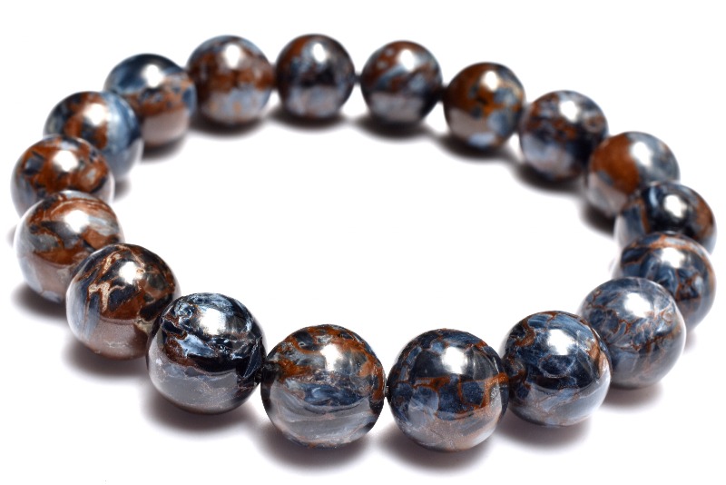 一般的にはタイガーアイ系の茶褐色が多いですが、ブルータイガーの青系もあり、茶と青の混じったものもあります。