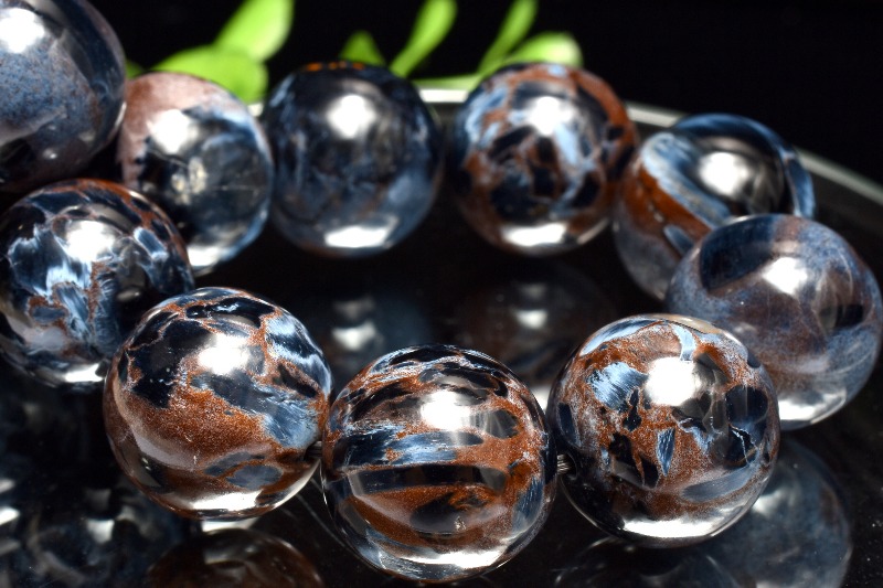 一般的にはタイガーアイ系の茶褐色が多いですが、ブルータイガーの青系もあり、茶と青の混じったものもあります。