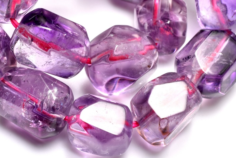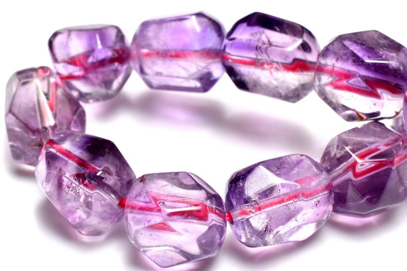 パワーストーンの定番アメジストに、細かなゲーサイトやレピドクロサイトが入っているアメジストスーパーセブンです。