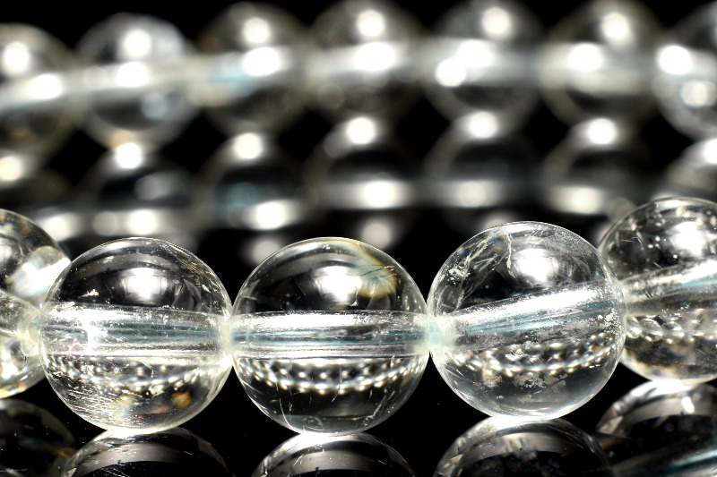 稀に虹入りの珠や、白雲母(モスコバイト)やトルマリンなどの内包物も見られます。