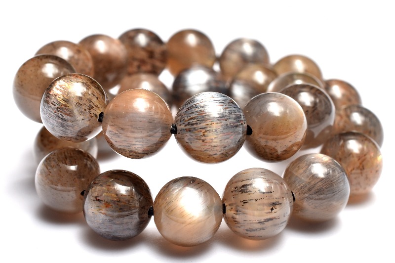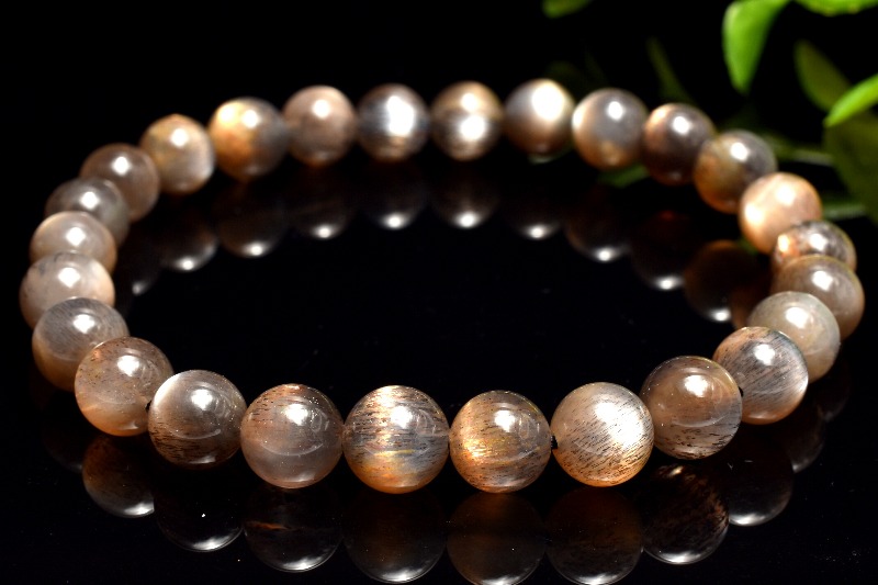 【1点物】2つの輝き◇インド産 ブラックサンムーンストーン 7mm ブレスレット _MC616