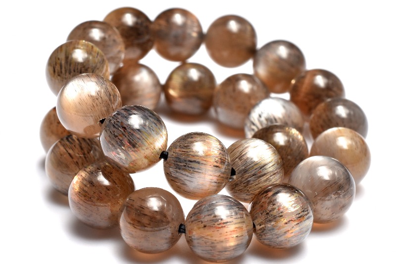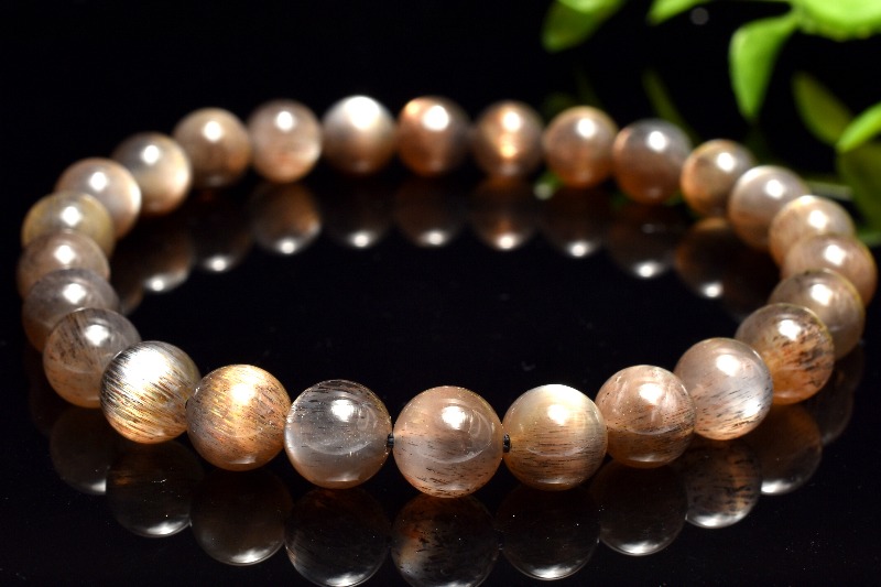 【1点物】2つの輝き◇インド産 ブラックサンムーンストーン 7mm ブレスレット _MC617