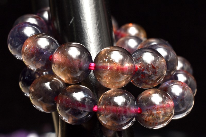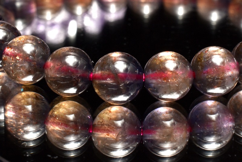 内包されたサンストーンがまるで夜空の星のようにきらめいて一粒一粒幻想的です。