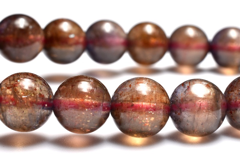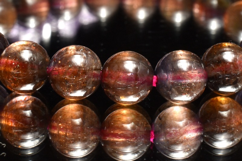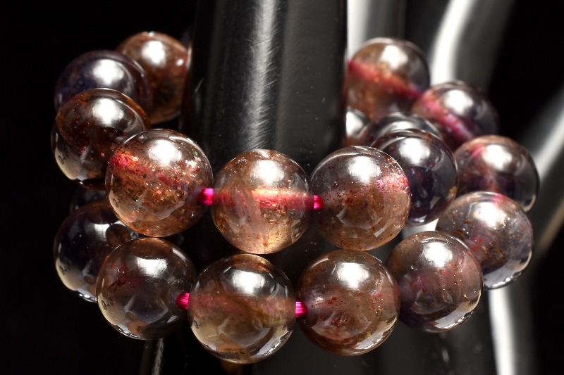 内包されたサンストーンがまるで夜空の星のようにきらめいて一粒一粒幻想的です。