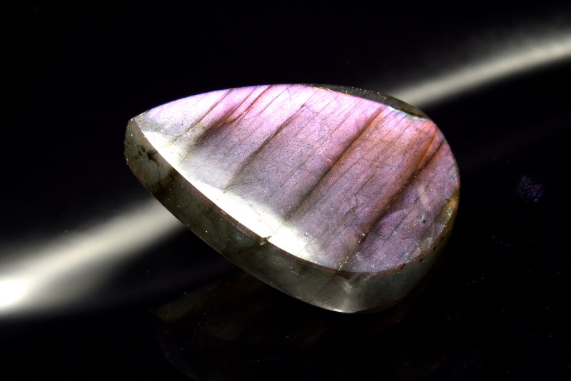 ラブラドライトの特色は、なんと言ってもその美しい閃光です。冷たそうでいて、非常に深みのある光は「ラブラドレッセンス(ラブラド光線)」と呼ばれます。