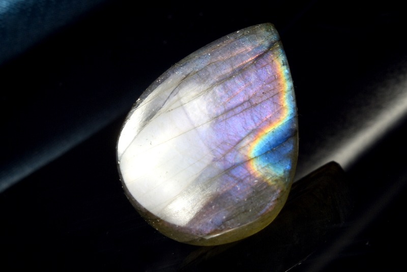 ラブラドライトの特色は、なんと言ってもその美しい閃光です。冷たそうでいて、非常に深みのある光は「ラブラドレッセンス(ラブラド光線)」と呼ばれます。