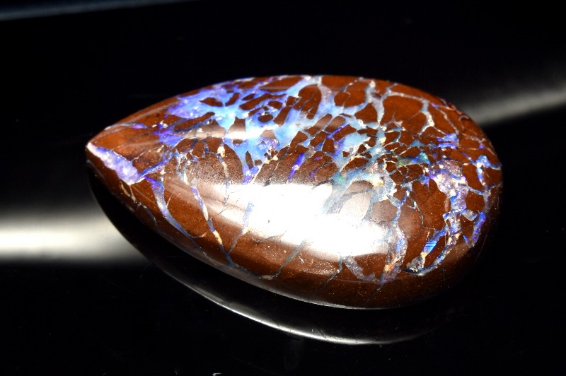 他のオパールと同様に青や紫、緑、赤、オレンジといった様々な遊色を放つものもあります。