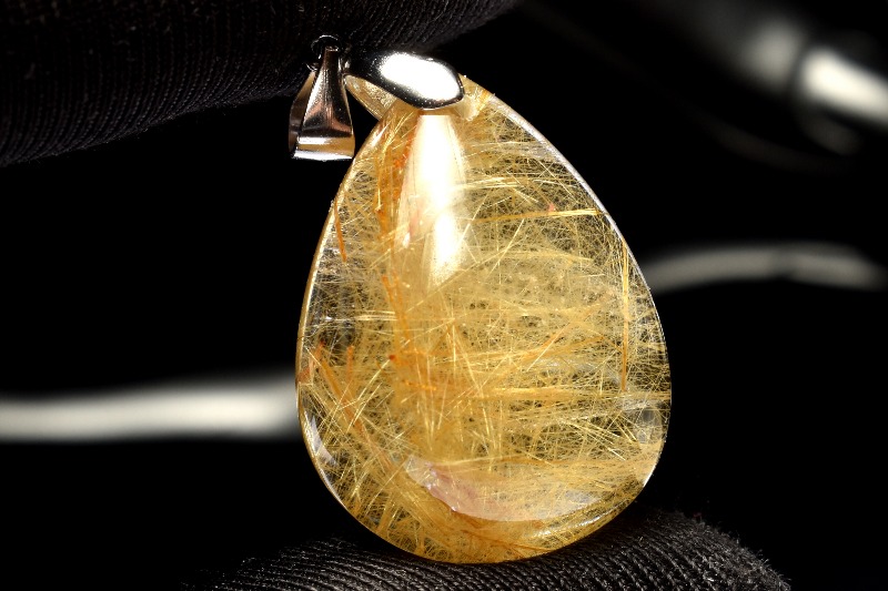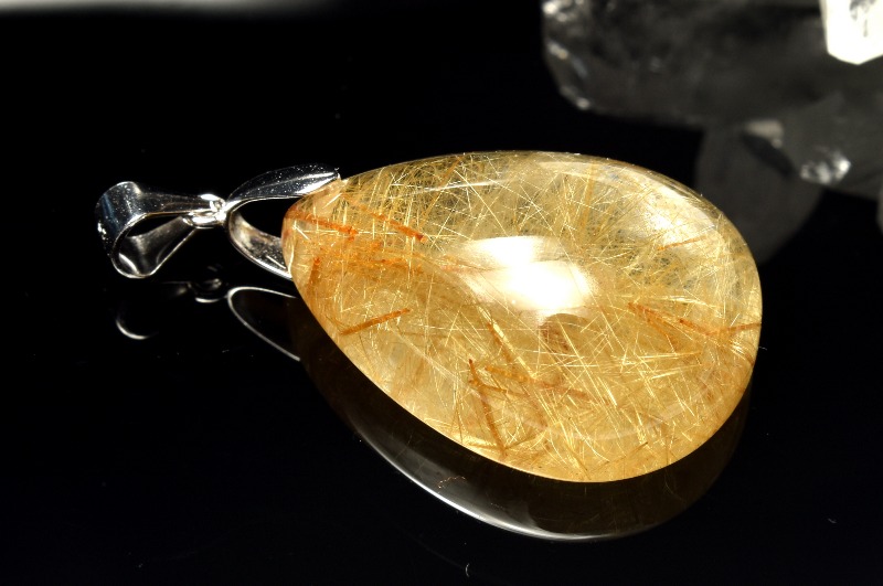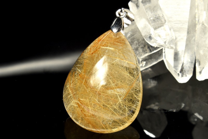 【1点物】Silver925◇透明高品質 ゴールドルチルクォーツ 26x19mm ドロップ ペンダントトップ _PC6943