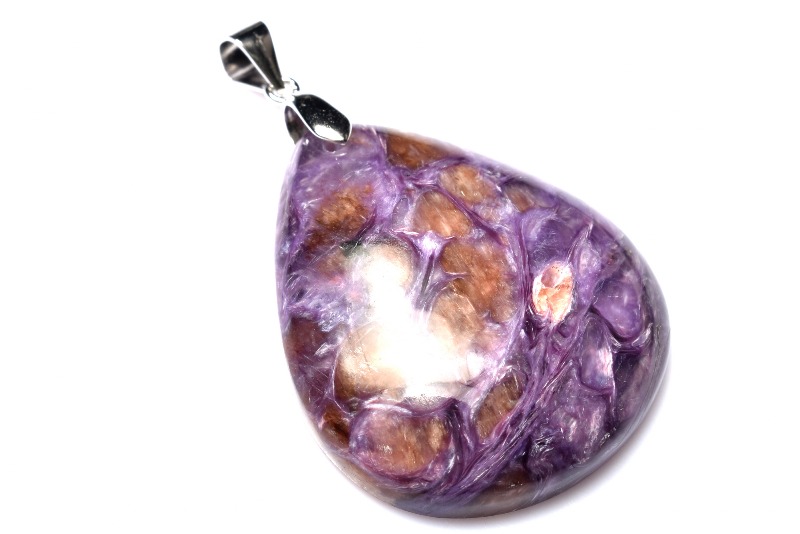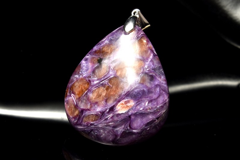 チャロアイトという名前の由来には、シベリアのチャロ川流域で発見された事とする説と、ロシア語の(Charo魅惑)から名づけられたという説がありますが、後者の方が有力であるとされています。その名の通り、この石の個性的な模様は、見る人を魅了してやみません。まさに、「魅惑の宝石」にぴったりな石です。