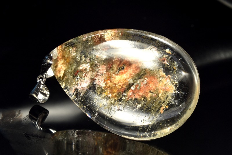 【1点物】Silver925◇庭園風景 ガーデンクォーツ 38x26mm ドロップ ペンダントトップ _PC7001