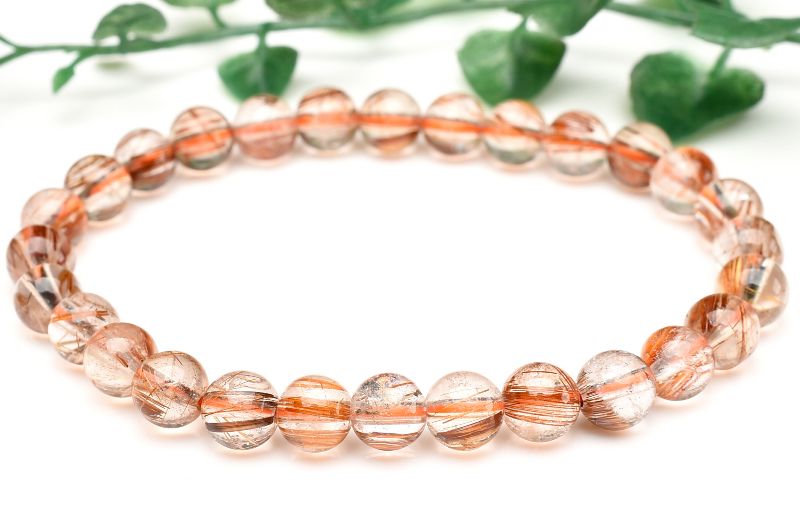 【1点物】透明◇内包美 ブロンズルチルクォーツ 6.5mm ブレスレット _U7926