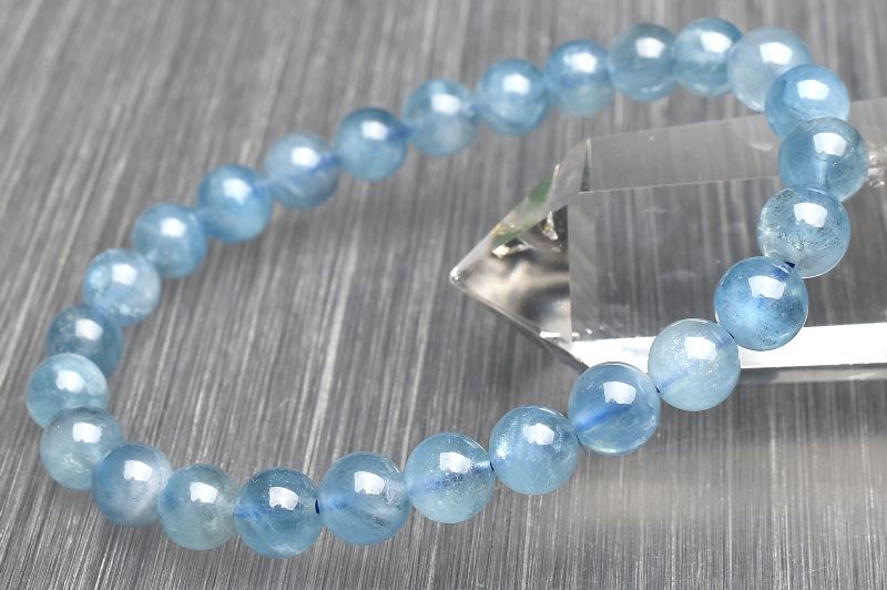 【1点物】透過性あり◇海色ブルー アクアマリン 7mm ブレスレット _U7942